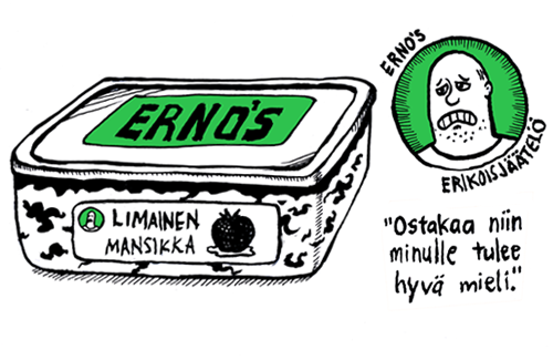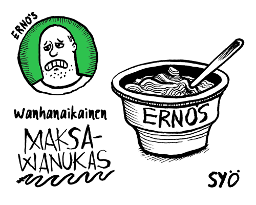 Tiesitkö että Erno valmistaa myös yleistahnaa? [Ernon yleistahna] Voit käyttää yleistahnaa kaikkeen: hammastahnana, pakkelina, liimana, voiteena tai vaikkapa lahjana. Jos olet nainen, voit poistaa tahnalla tummat silmänaluset. Mies taas voi hieroa tahnaa lihaksiinsa kylmägeelin tapaan.